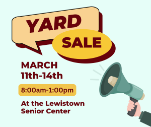 Lewistown Senior Center is hosting a Yard Sale Fundraiser on March 11th-14th from 8:00am to 1:00pm each day. The center is located at 515 Knepp Avenue in the former Central Novelty building. All proceeds benefit the center!