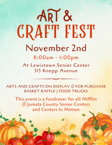 Come see our vendors, enter the basket raffle, and enjoy the food trucks! All proceeds go to Mifflin & Juniata County Senior Centers and Centers In Motion.
