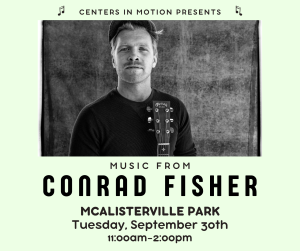 Conrad Fisher will be playing Tuesday, September 30th at McAlisterville Park! This event is part of Centers In Motion programming, which is open to all Mifflin-Juniata area adults age 55 and older. Lunch is included. The park is on Main Street in McAlisterville. There will be 2 sets of 45 minutes each. Attendance is FREE, program donations are appreciated. Call Beth Harlan at 717-320-8367 for more information!