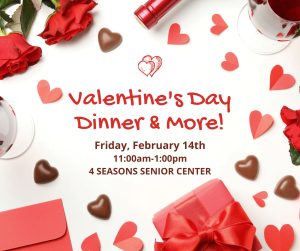 Adults 60 and older are invited to the Valentine’s Dinner & Activity Day at 4 Seasons Senior Center, 47 CJEMS Lane in Mifflintown. The day will include bingo, cornhole, prizes, card games, and more! A meal is included. Call Jody at 717-436-6847 for more information.